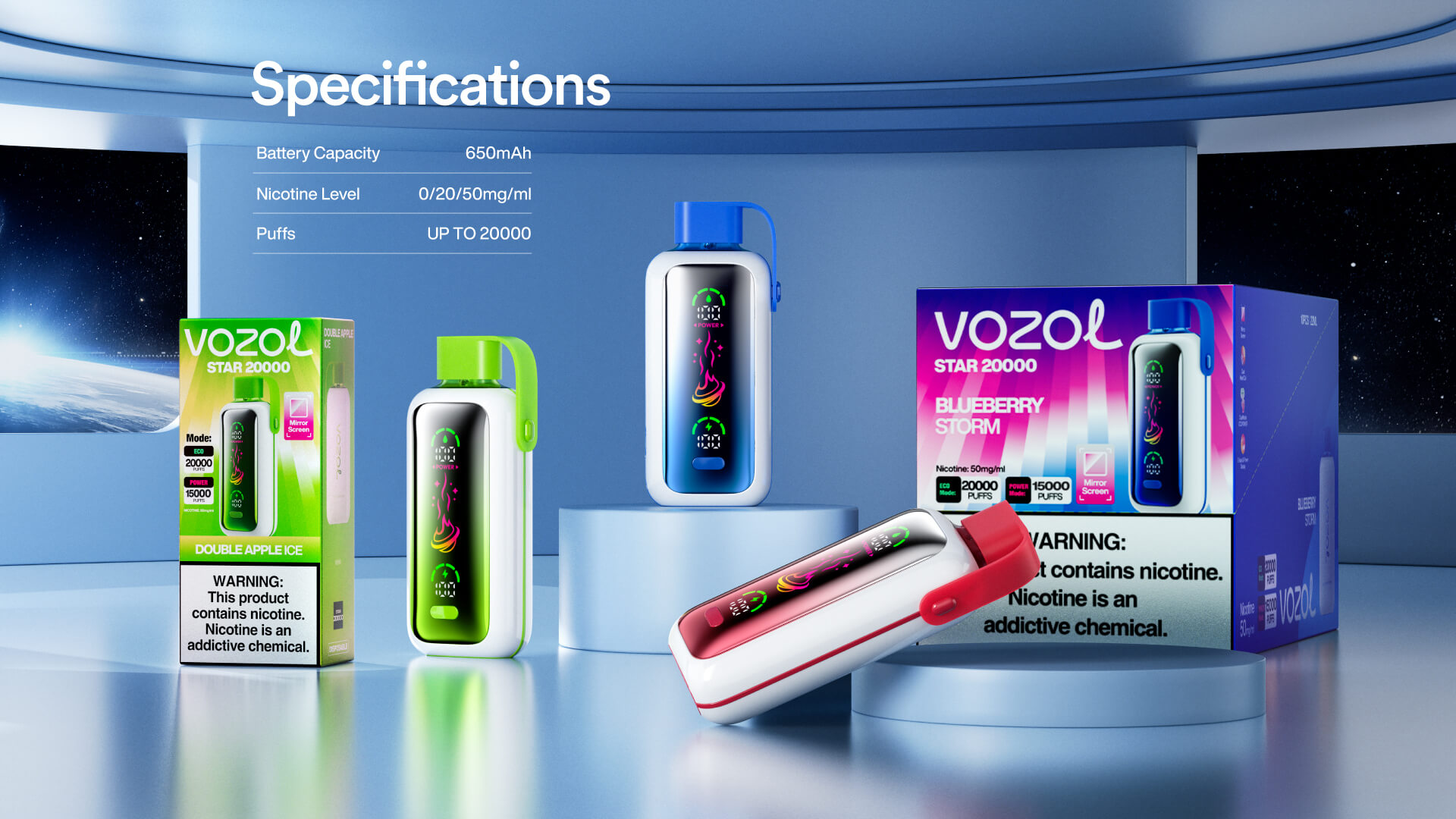 کمپانی وزول (Vozol) با معرفی مدل Star 20000، آینده ویپینگ یکبار مصرف را به امروز آورده است. این دستگاه با ترکیب ظرفیت پاف خیرهکننده، صفحه نمایش تمام رنگی و تکنولوژیهای انحصاری، یک انتخاب بینقص برای ویپرهایی است که به دنبال کیفیت، دوام و تجربهای مدرن هستند.